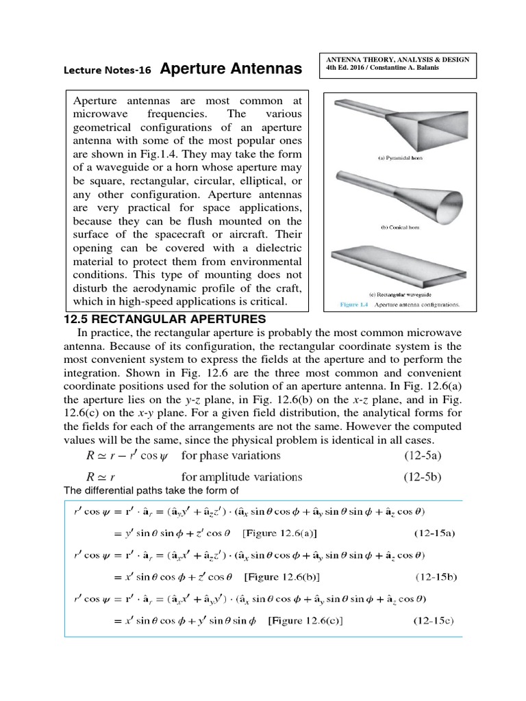Aperture Antennas: Lecture Notes-16 | Antenna (Radio) | Plane (Geometry)